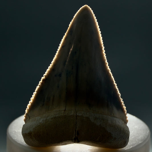 Dark Colors, sharply serrated 2.23" Fossil Great White Tooth for Sale