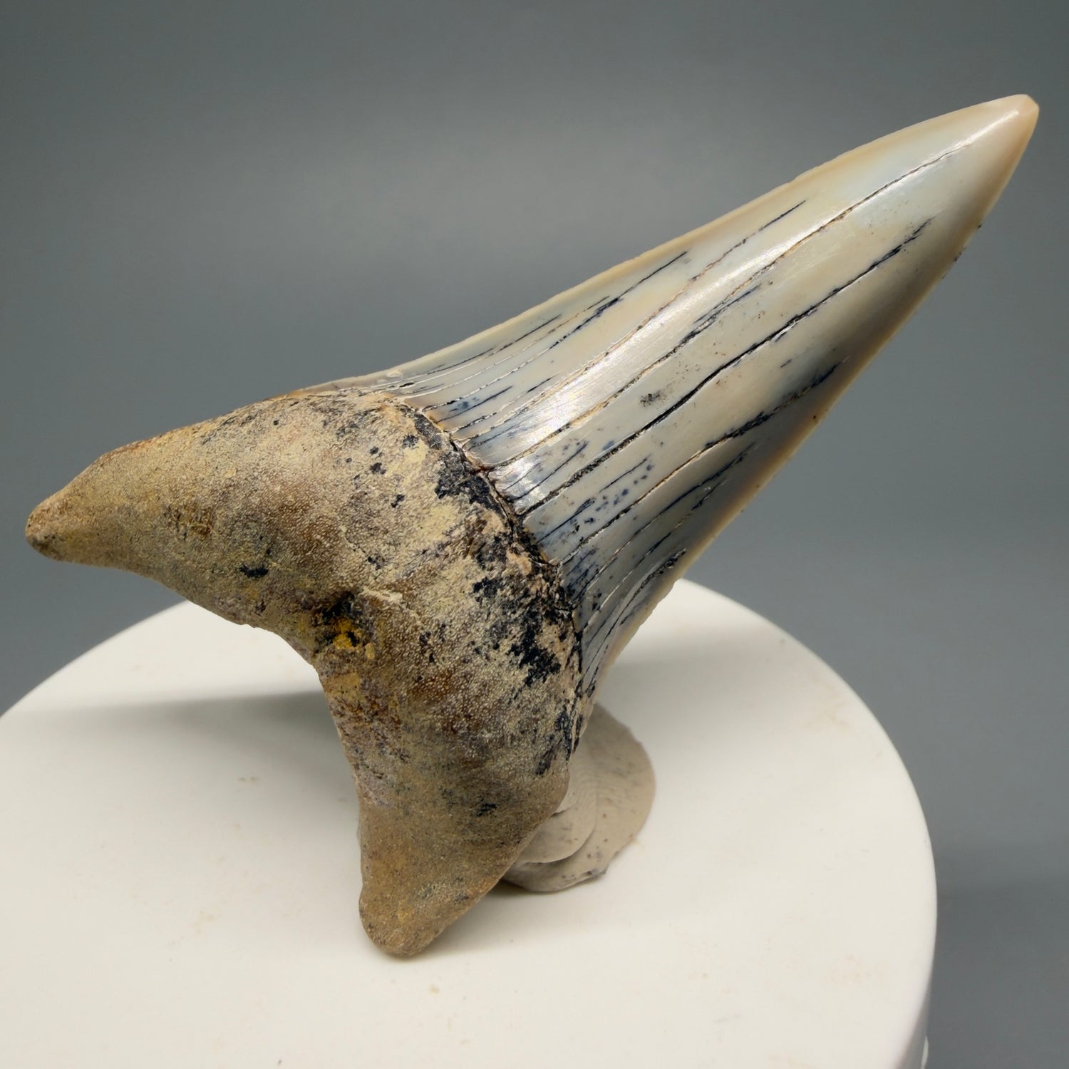 Lower, sharply serrated 1.77" Fossil Great White Tooth for Sale