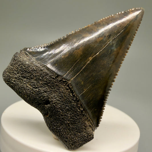 Dark Colors, sharply serrated 2.23" Fossil Great White Tooth for Sale