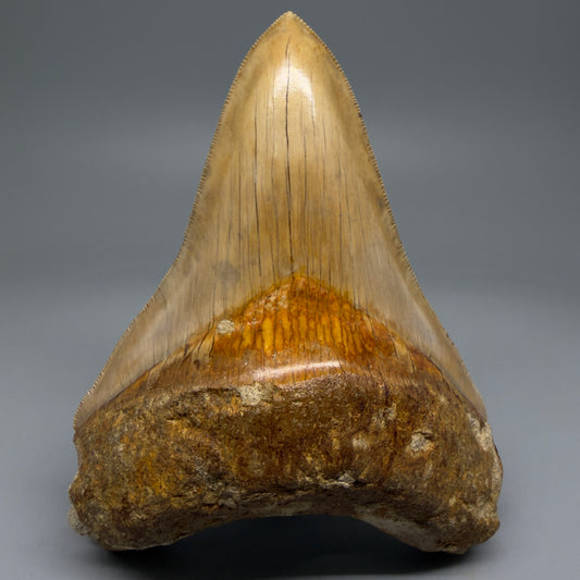 Collector's Quality, colorful 5.54″ Colorful Megalodon Tooth – West Java Indonesia