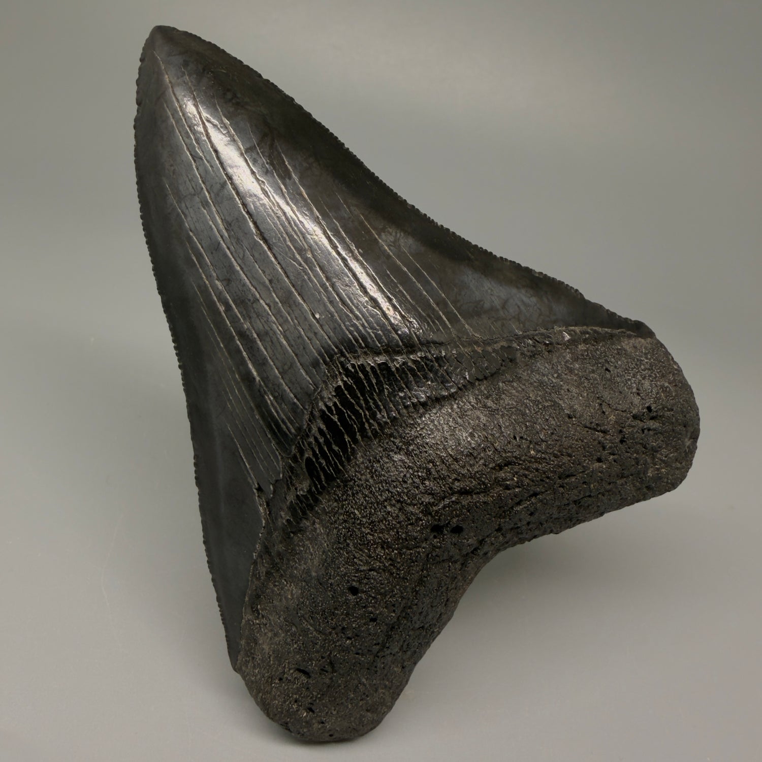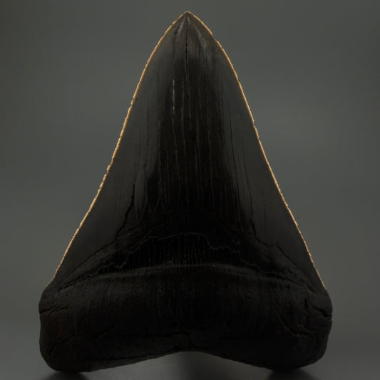 Authentic 4.21" Collector Megalodon Tooth – Jet Black Fossil Megalodon Tooth from South Carolina for Sale
