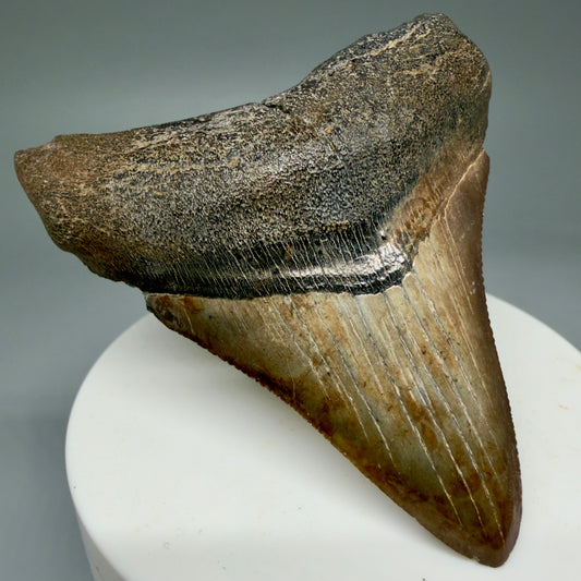 Colorful 2.77" Fossil Megalodon Shark Tooth - Georgia - brown/serrated