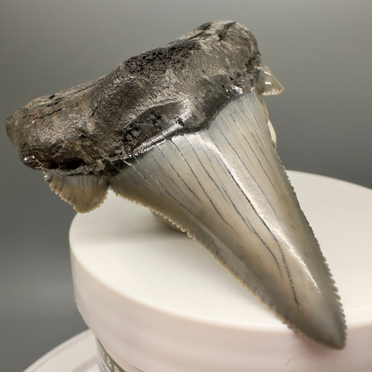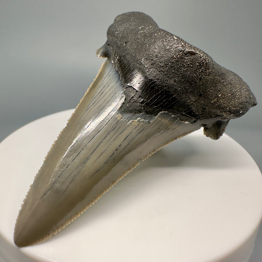 Gorgeous prints 2.39" Serrated Fossil Carcharocles angustidens Shark Tooth from South Carolina