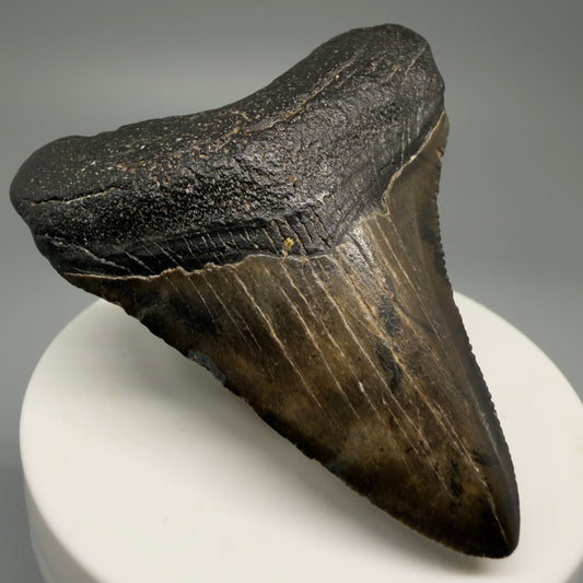 Heart-shaped, serrated 5.00" Authentic Megalodon Tooth – North Carolina Fossil | Carcharocles megalodon