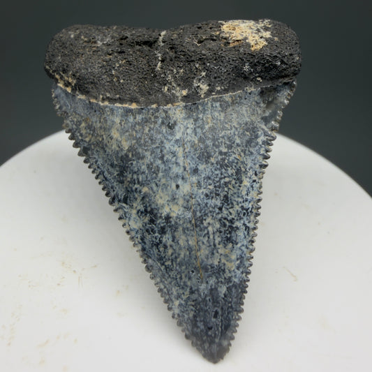 Dark Colors, sharply serrated 2.23" Fossil Great White Tooth for Sale