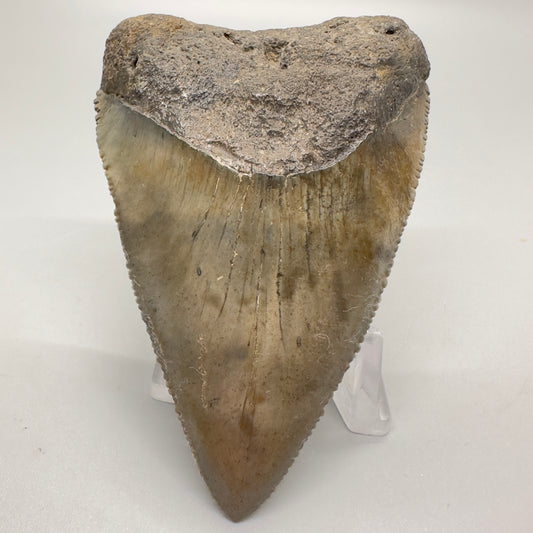 Colorful, sharply serrated 1.12" Fossil Great White Tooth from Sarasota, Florida