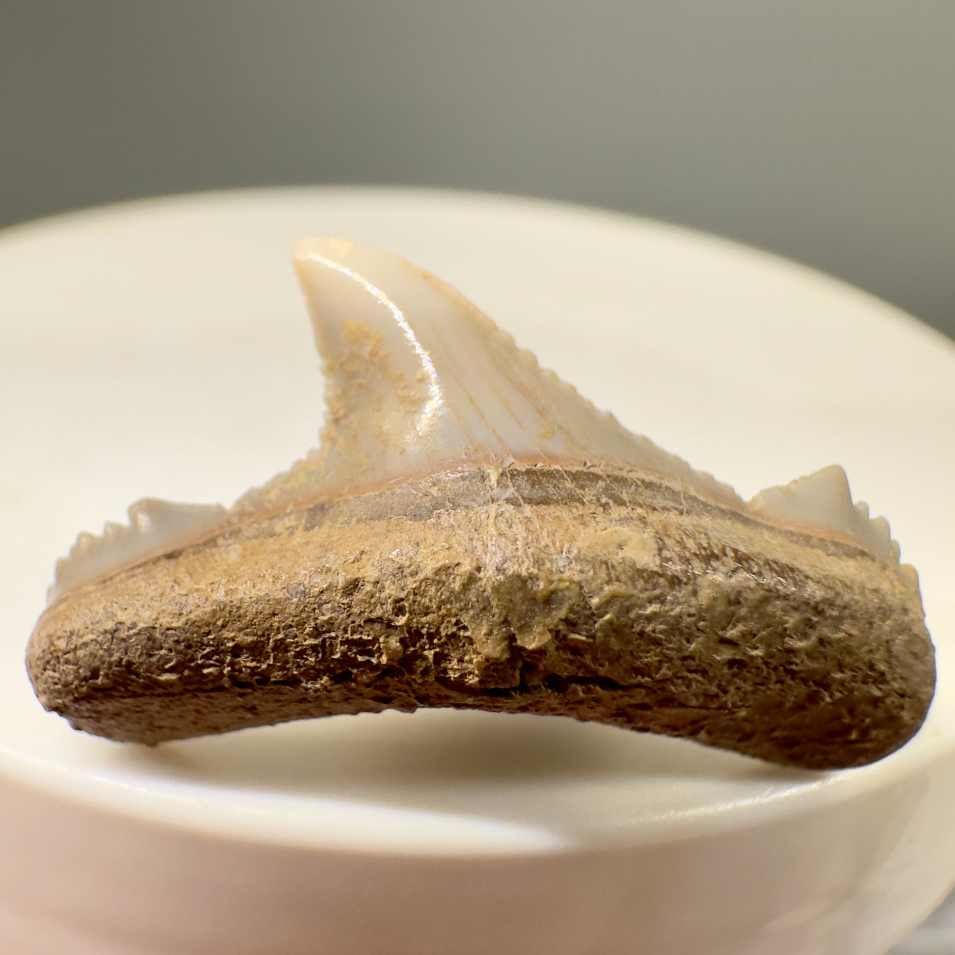 Don't miss your chance to own a genuine piece of the past. Add this Tiny Carcharocles auriculatus Shark Tooth to your collection today and marvel at the mysteries of the early Eocene era. Hurry, as this rare find won't stay in stock for long!